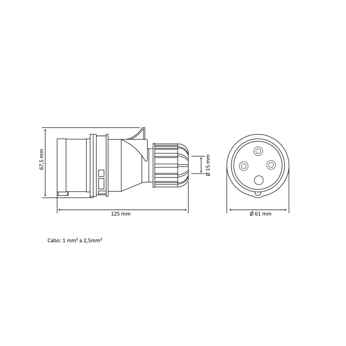 PLUG MÓVEL INDUSTRIAL 3P+T 380V 6h - COM PRENSA CABO.